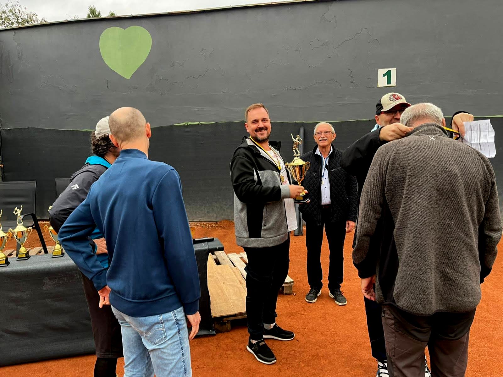 V podvečerných hodinách v piatok 27. 9. sa na záverečnom zhromaždení Trnavskej tenisovej ligy oficiálne ukončila sezóna 2024. Počasie nám nakoniec umožnilo usporiadať koncosezónne vyhodnotenie priamo na tenisovom kurte, kde sa zišlo niečo cez 35 hráčov. Po úvodnom príhovore nášho predsedu Pavla Dienera, sa plynulo prešlo k odovzdávaniu cien. Na úvod sa vyhodnotil LIGOVÝ POHÁR, kde sa počítajú len body z ligovej časti (bez turnajov). Ocenenie dostali traja najlepší z každej ligy, s výnimkou tej druhej, nakoľko práve zápas o 3.miesto môže zamiešať kartami na prvých troch miestach. Vo veteránskej lige bol v tejto kategórii najúspešnejší nováčik medzi 50-tnikmi a to legenda TTL Peter Ulehla. Len o 3 body zaostala ďalšia veľká hviezda VET ligy Valér Vrábel a posledné oceňované miesto získal Marián Uhlár. V najvyššej súťaži dominoval František Nemčovič zo Šenkvíc, ktorý neprehral ani jeden z 13 odohratých zápasov. Na druhom mieste skončil nováčik ligy Marcel Musil z Geothermu a bronzovú priečku obsadil jeho tímový kapitán Marioš Štetina. Po ligovom pohári nasledovalo vyhodnotenie tímovej časti, kde sme zatiaľ nespoznali tretie miesto 2.ligy (LTC vs Pionieri). Vo VET lige preberal trofej za prvý JAF Holz Miro Malženický, druhá MOKA nemala svojho zástupcu a za nováčika Parateam, ktorý skončil na bronzovom stupienku to bola Silvia Bodoriková. V druhej lige si za druhé miesto, okrem pohára prebrali hráči C-Teamu aj medaile, menovite Romana Hunková, Jaroslav Bojňanský, Pablo Gutierrez, Martin Melišík a kapitán Pavol Diener. Podobne na tom boli aj víťazi z Amigos a zlato na krku sa ligotalo Vomastovcom, Martinovi Naňovi, Petrovi Violovi a Darovi Krištofíkovi. V prvej lige si bronzové medaile nechali zavestiť na krk Peter Karaba, Marek Osvald a kapitánka Silvia Bodoriková. Druhé miesto tento rok získali hráči Geothermu, za ktorých preberal trofej Maroš Štetina s Romanom Gregušom. Za víťazné ESÁ preberal pohár kapitán Henrich Ušák a medailu si odniesli Zdeno Takáč, Miroslav Šmičko, Paťo Ščevík a Martin Lackovič. Poslednou hromadnou kategóriou je súťaž jednotlivcov, kde sme spoznali najlepších singlistov a deblistov. Vo veteránskej dvojhre bol najlepší Peter Kolbík z MOKY, ktorý len o jediný bod predbehol Dana Bobáka z Jaslovských Bohuníc. Bronz putuje do Smoleníc pre Maroša Fornera. Vo štvorhre pre zmenu o jeden bodík vyhral Peter Puškár-Empire, pred svojim Saske Mange kamarátom Petrom Ulehlom-Parateam a pohár za tretie miesto si odniesol Vlado Závodný-JAF Holz. V druhej lige sa konečne dvojhrového titulu dočkal Jaro Bojňanský- C-TEAM, keď o 10 bodov predbehol rozbehnutého Miša Vomastu-AMIGOS a na treťom mieste sa umiestnil Peter Ulehla zo Spartaku. Prvú ligu po dvoch rokoch znovu ovládol Zdeno Takáč-ESÁ (1.miesto v rokoch 2020-2021 a 2.miesto 2018-2019), striebro získal posledným víťazným zápasom sezóny Marek Mikuš- PRIMA (víťaz z roku 2022) a tretí skončil Maroš Štetina z Geothermu. Tak ako vo dvojhre nebolo jasné kto skončí druhý a kto tretí až do posledného zápasu, tak niečo podobné sa udialo aj vo štvorhre OPEN (spoločne 1.-2. liga). Tu dokonca nerozhodoval posledný zápas, ale dokonca posledný dohrávaný set finále. Tretie miesto s malou stratou získalo 4-hrové prekvapenie sezóny Jano Hajdúch-Vitamín a ako bolo spomenuté o to prvé sa naťahovali minuloročný víťaz Jozef Ulehla-Šenkvice a 7-násobný víťaz Martin Lackovič-ESÁ (2016 až 2022). Obaja mali na konte 79 bodov, ale druhý menovaný nakoniec so svojim parťákom zvládli poslednú 4hru sezóny a okrem tímového titulu si pripísal aj ďalší štvorhrový vavrín. Výkonnostný pokrok pre rok 2024 zaslúžene získal Michal Vomasta z AMIGOS a cenu fair play s odretými ušami dostal Marek Osvald z 5Bananas 😊 . Všetkým oceneným gratulujeme a vidíme sa v 48.ročníku TTL. (komplet rebríčky budú aktuálne potom ako sa dohrajú posledné dva zápasy 2.ligy)